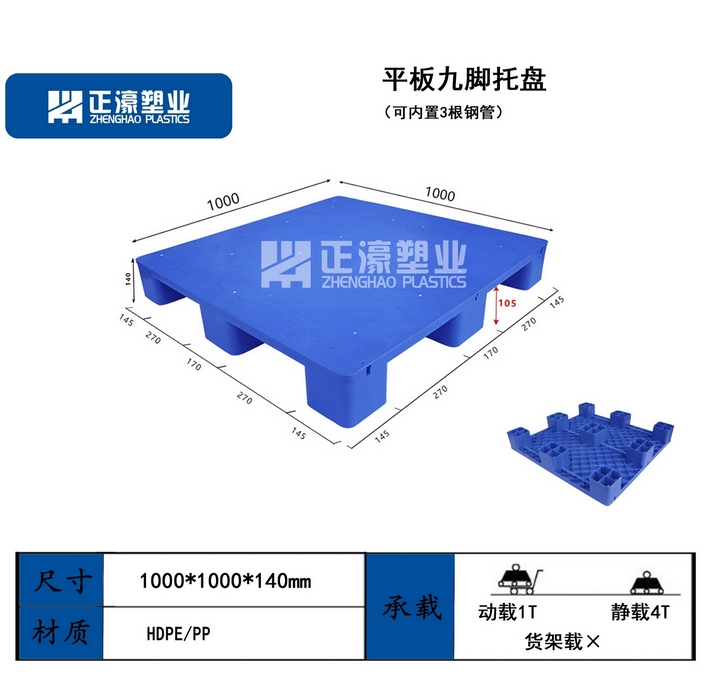 規格尺寸從1000mm-1600mm,高度由76mm-170mm,能制造多種類型的托盤